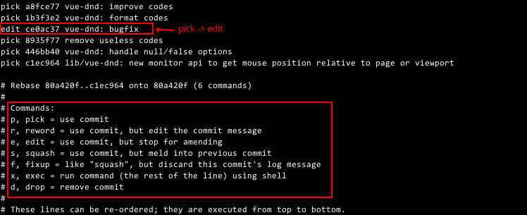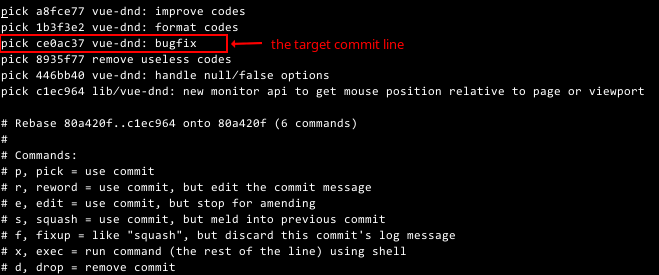 rebase到目标commit,则该提交不会显示在可修改清单内,故,需选择从其之前的第N个(e.g.~3)提交开始 - 若提交至非空的仓库,需确保目标分支不是受保护(