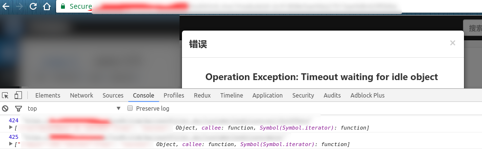 在本案例应用(约定称为「应用A」)的使用过程中偶尔会在前端弹出Timeout waiting for idle object的异常提示框。经过查看完整的异常堆栈(看上面)可发现,异常发生在从连接池获取Connection时,在对GenericObjectPool源码分析后可初步确定是因为连接池已满而无法分配新的Connection造成的。
