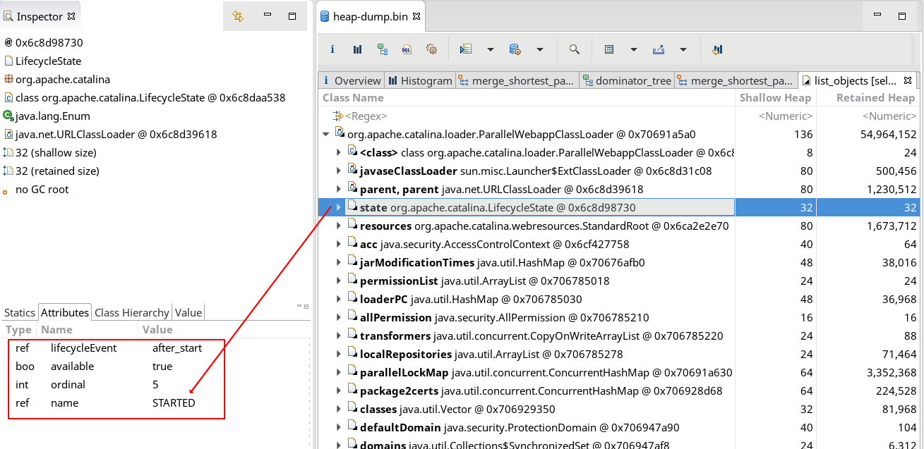 既然,ParallelWebappClassLoader包含这么多属性,那看看在前面发现的那些实例的state属性有何不同。
