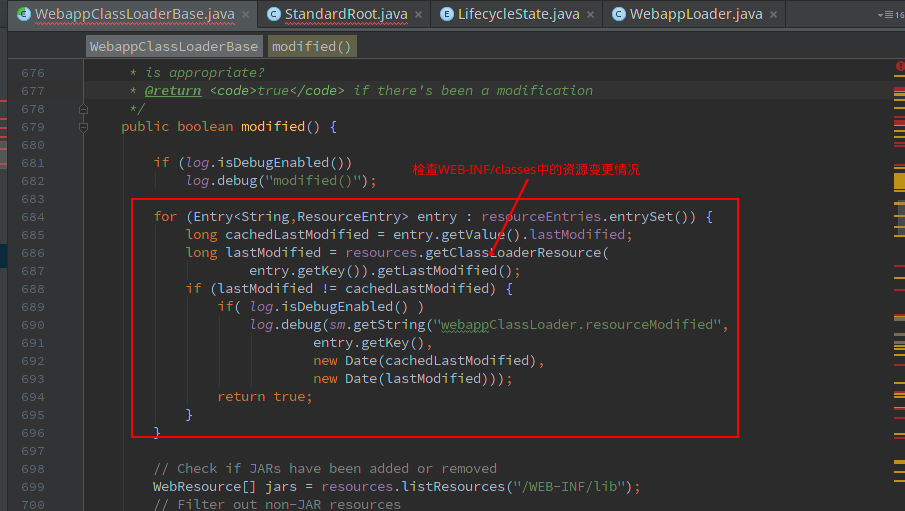 查找实现:org.apache.catalina.loader.WebappLoader#backgroundProcess