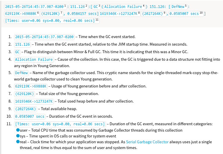 GC日志行的格式说明如下(Understanding Garbage Collection Logs):